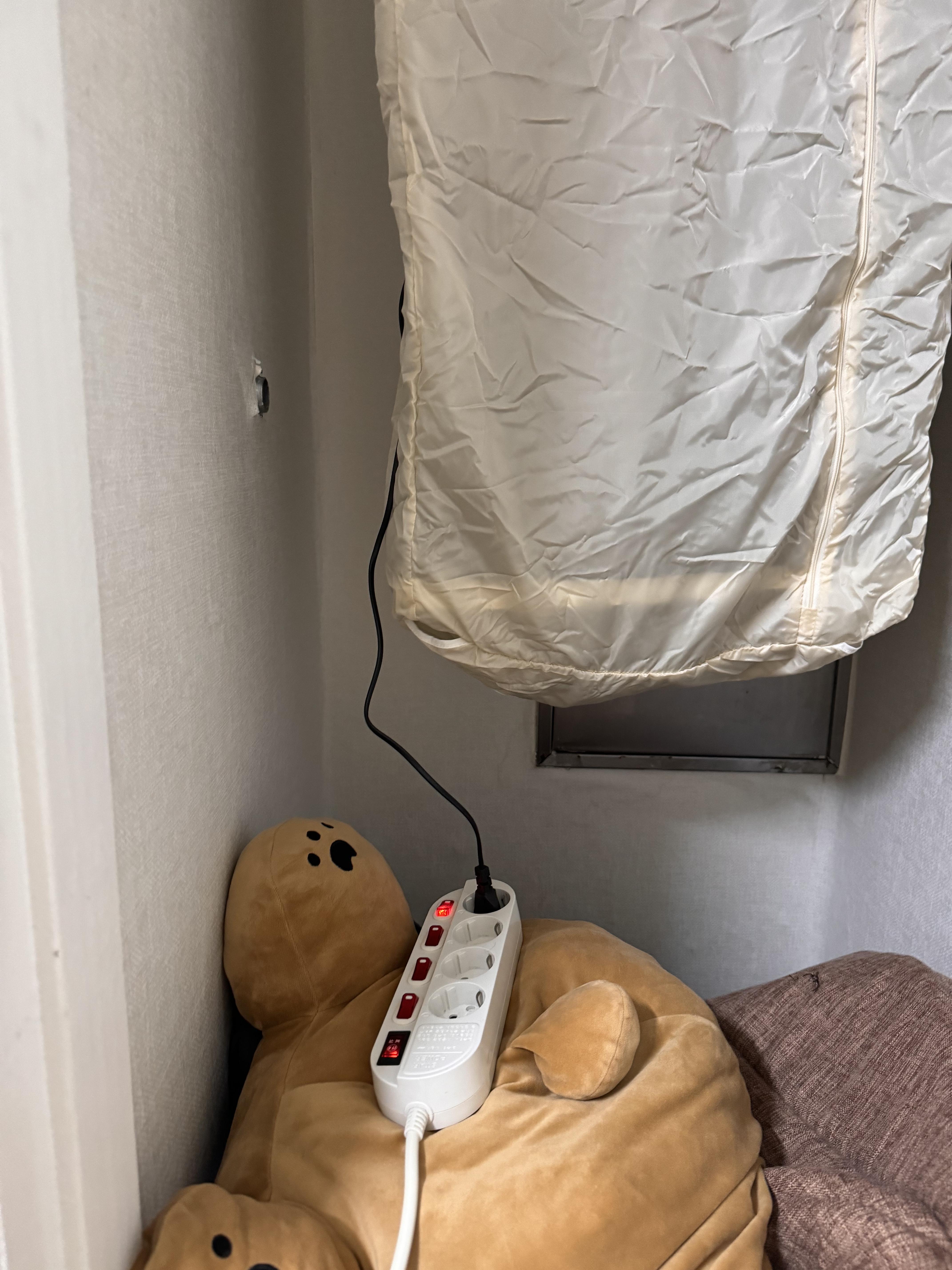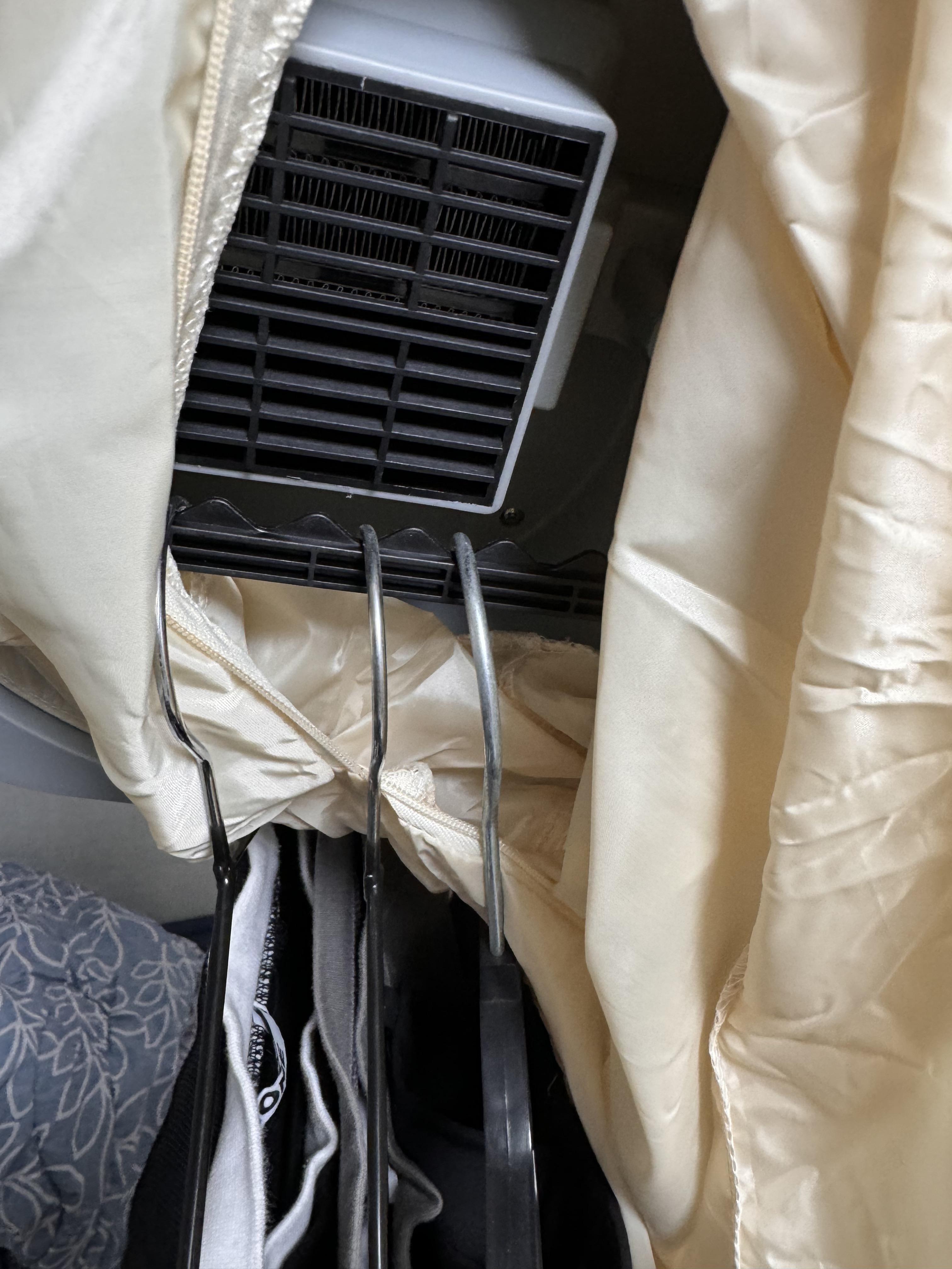 결론적으로 정말 가성비 좋은 제품이었고, 집에 하나 있으면 냄새나는 옷이나 젖은 옷을 잘 관리하고 편하게 쓸 수 있을 것 같아요. 기계 쪽은 플라스틱이고, 옷이 들어가는 부분은 경량용 바람막이 같은 재질이었어요. 다른 분들은 재질을 아쉬워했지만, 저는 상관없었어요. 옷걸이 부분은 조금씩 파여 있어서 옷을 걸어두기 용이했어요. UV 살균도 있었는데 너무 작고 초라해서 효과는 없는 것 같았어요.