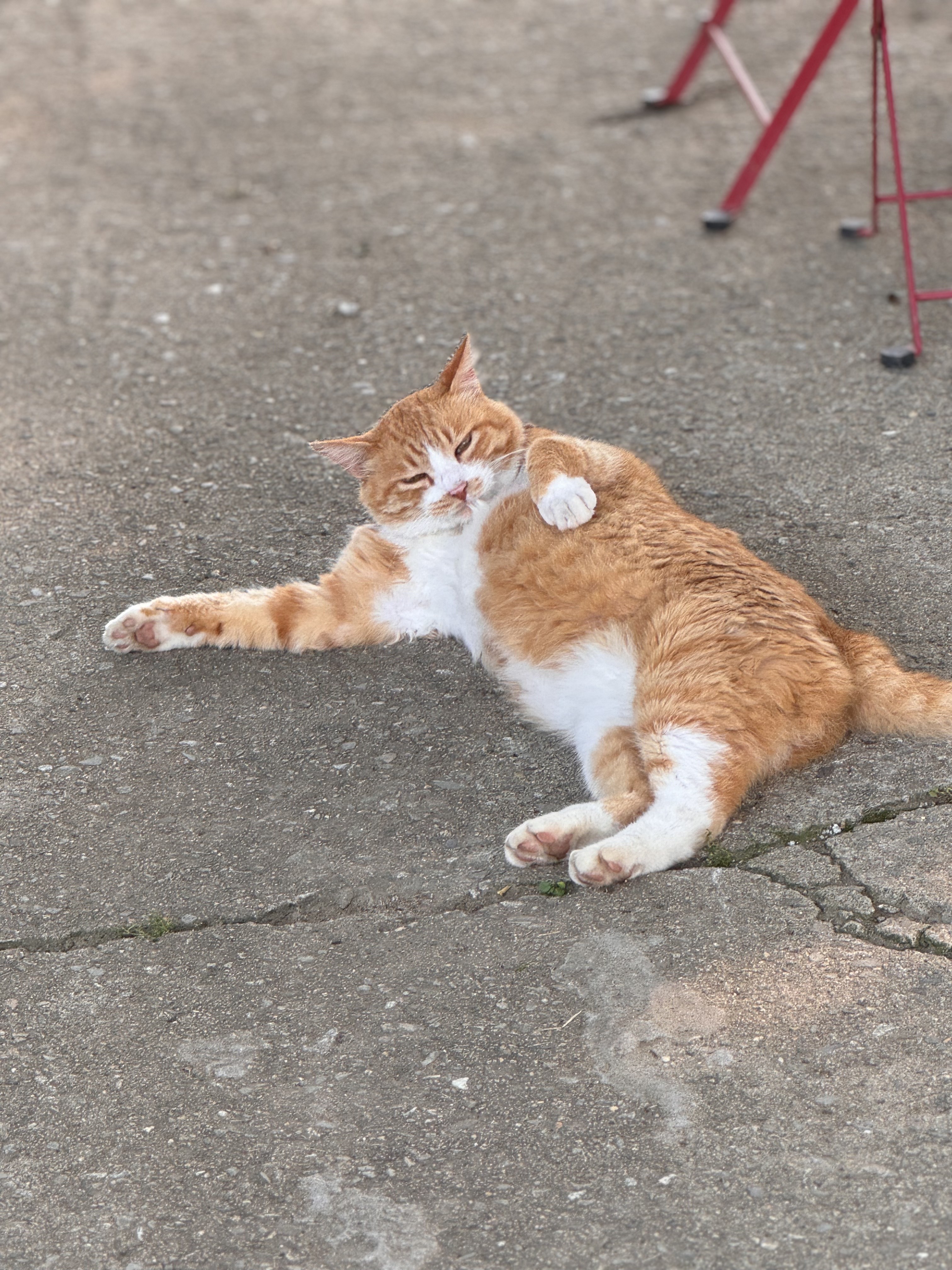 카페 다루지의 또 다른 매력 포인트는 바로 정원이죠! 정원에서 이야기를 나누다 보니 누워있는 고양이를 발견했어요. 고양이를 만지면서 여유롭게 시간을 보내며 소소하지만 아주 특별한 순간을 보낼 수 있었답니다 강화도에서 조용하게 힐링하고 싶은 분들에게 이곳을 강력 추천드려요. 유명한 조양방직 카페도 좋지만, 이곳만의 독특한 매력에 푹 빠져보는 건 어떨까요.