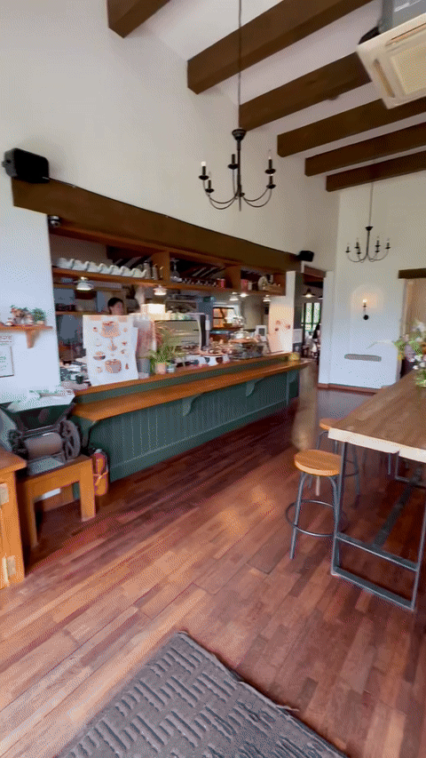 카페 안으로 들어서면, 시원한 에어컨 바람과 함께 깔끔한 인테리어가 눈에 들어와요. 특히, 각 테이블마다 다른 분위기를 느낄 수 있는 점이 매력적이었어요. 큰 테이블에서 친구들과 함께 모여 대화할 수도 있고, 아늑한 작은 테이블에서는 연인들이나 친구들끼리 조용히 이야기를 나누기에도 좋죠 저희는 창밖을 바라보며 앉을 수 있는 테라스 자리에 앉았는데 시원한 에어컨 바람과 바라보는 풍경이 정말 좋았어요.