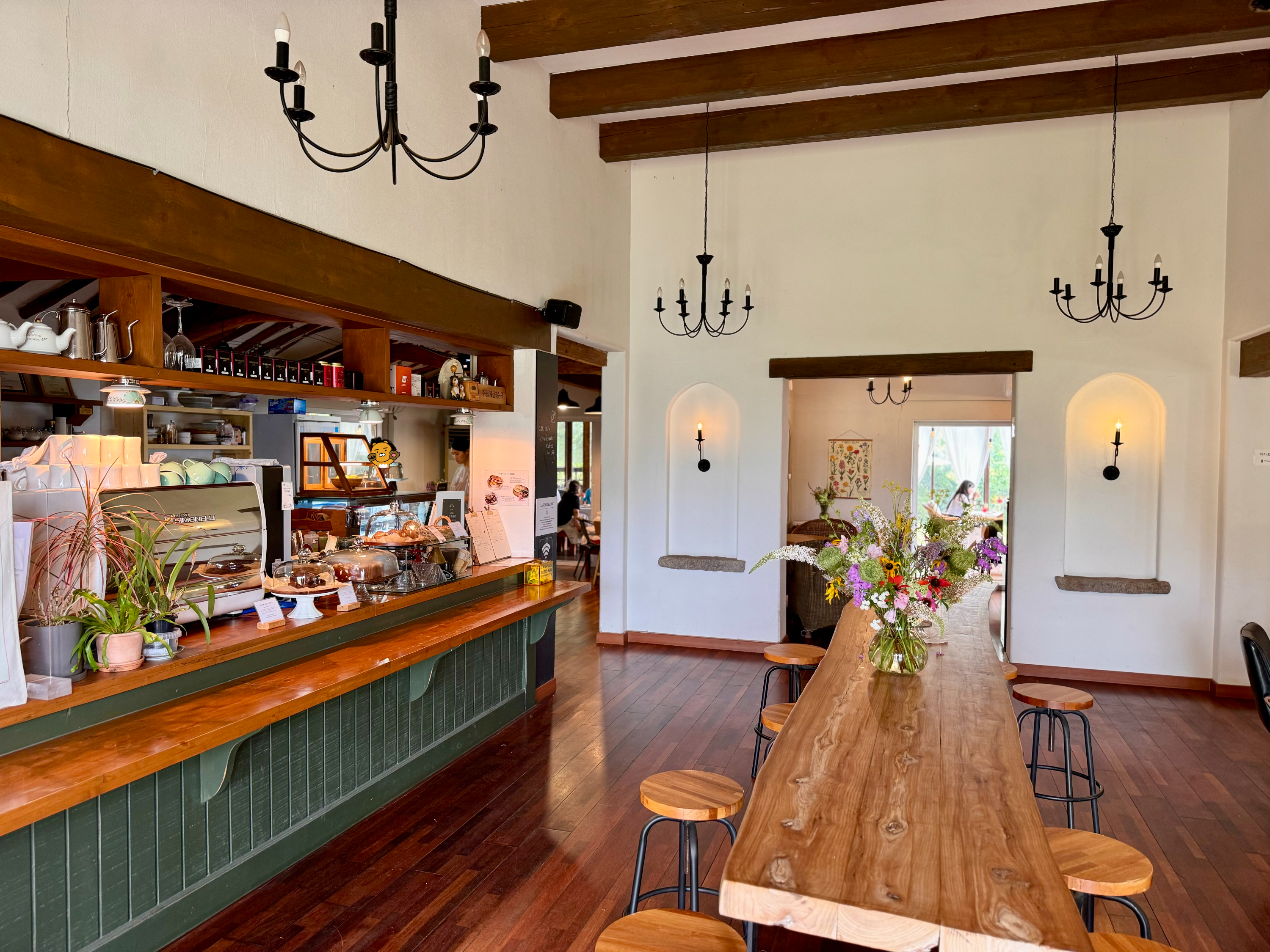 카페 다루지의 내부는 깔끔하고 아늑하며, 각 테이블마다 다른 분위기를 느낄 수 있습니다. 테라스 자리에서 밖을 내다보며 힐링할 수 있는 공간도 마련되어 있으며, 유럽풍의 정원은 사진을 찍기에도 좋은 장소입니다.