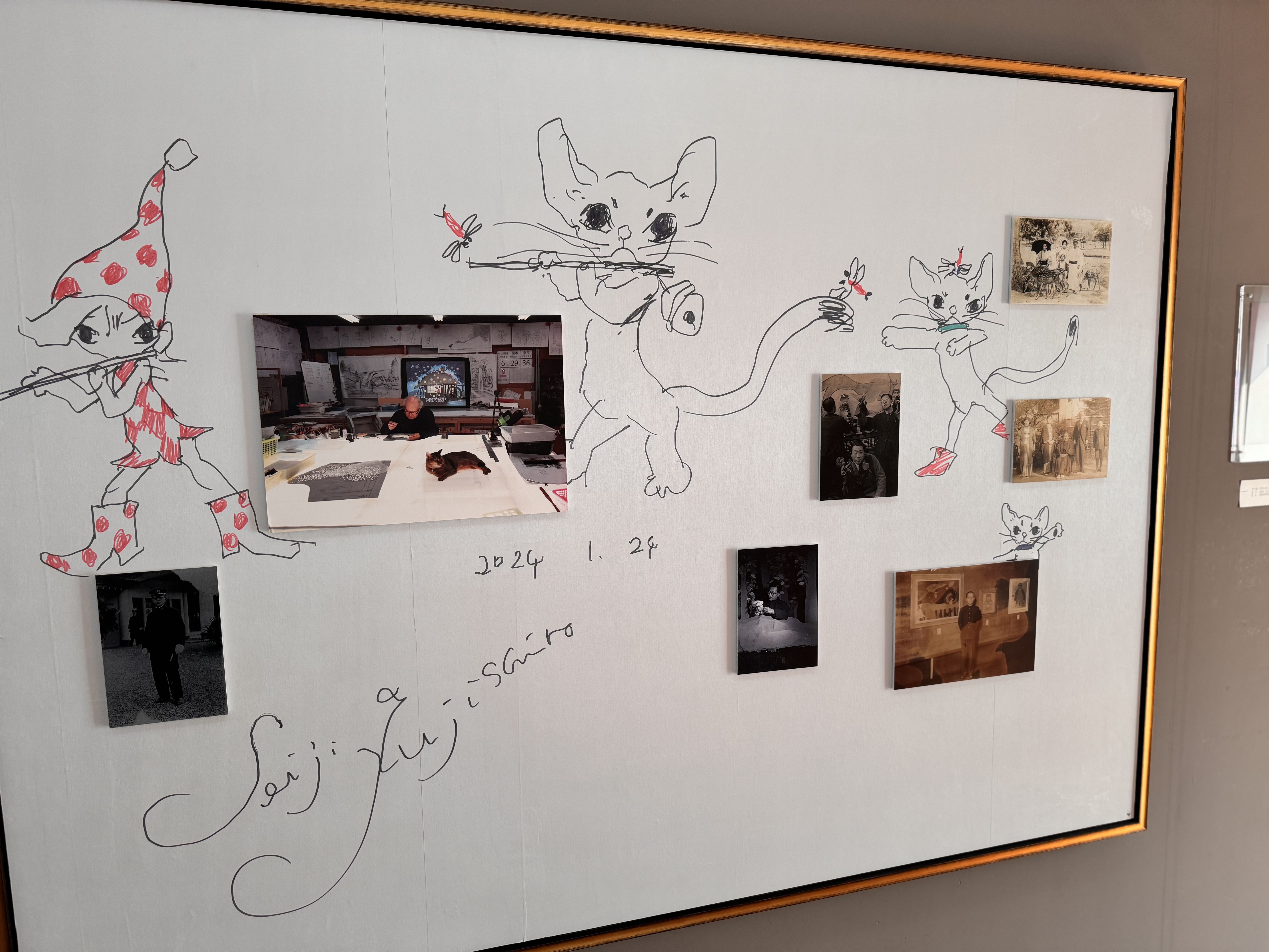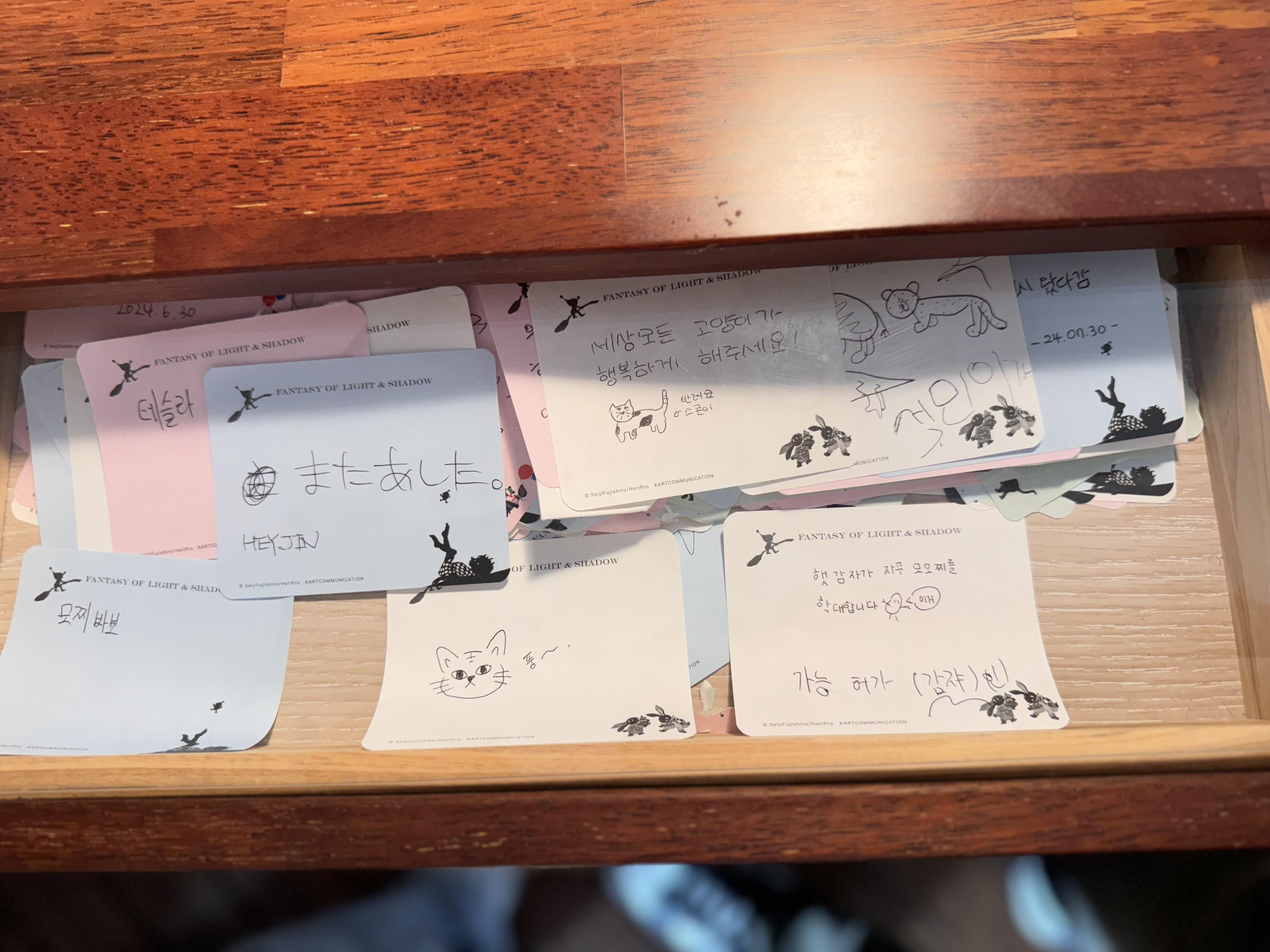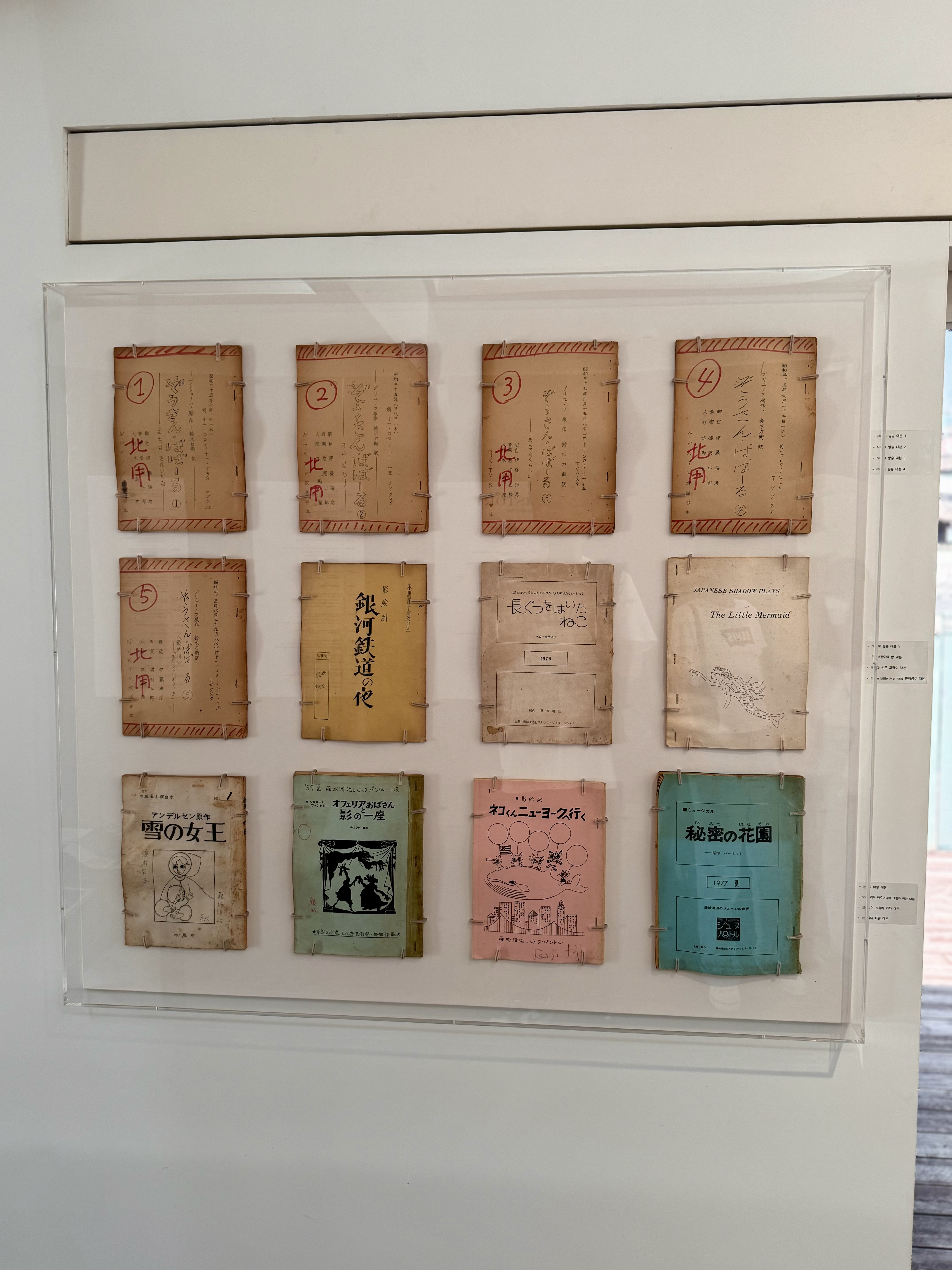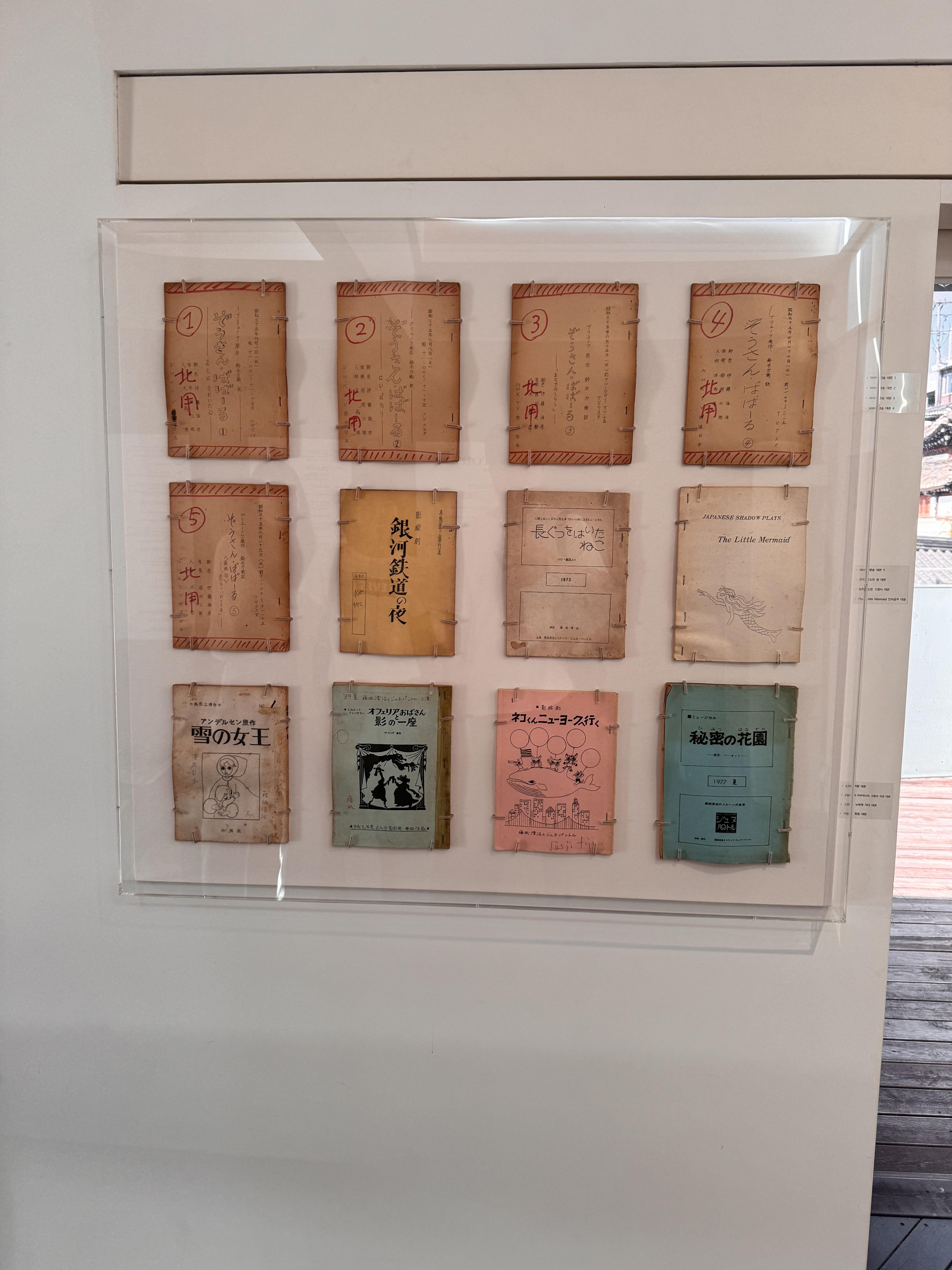 3층에서는 후지시로 세이지 작가의 100세에 이르는 세월이 담긴 다양한 것들을 볼 수 있었어요. 연표부터 활동한 작품들까지 그의 작업 여정을 함께 느끼는 귀중한 자료들이 전시되어 있었답니다. 그리고 옛날 노래도 들을 수 있는 LP판도 있어서 직접 체험도 해봤어요! 방명록도 작성을 할 수 있었고 이곳에서 다양한 체험을 하고 작가의 작품 세계에 더욱 깊게 빠져들 수 있어서 좋았어요.