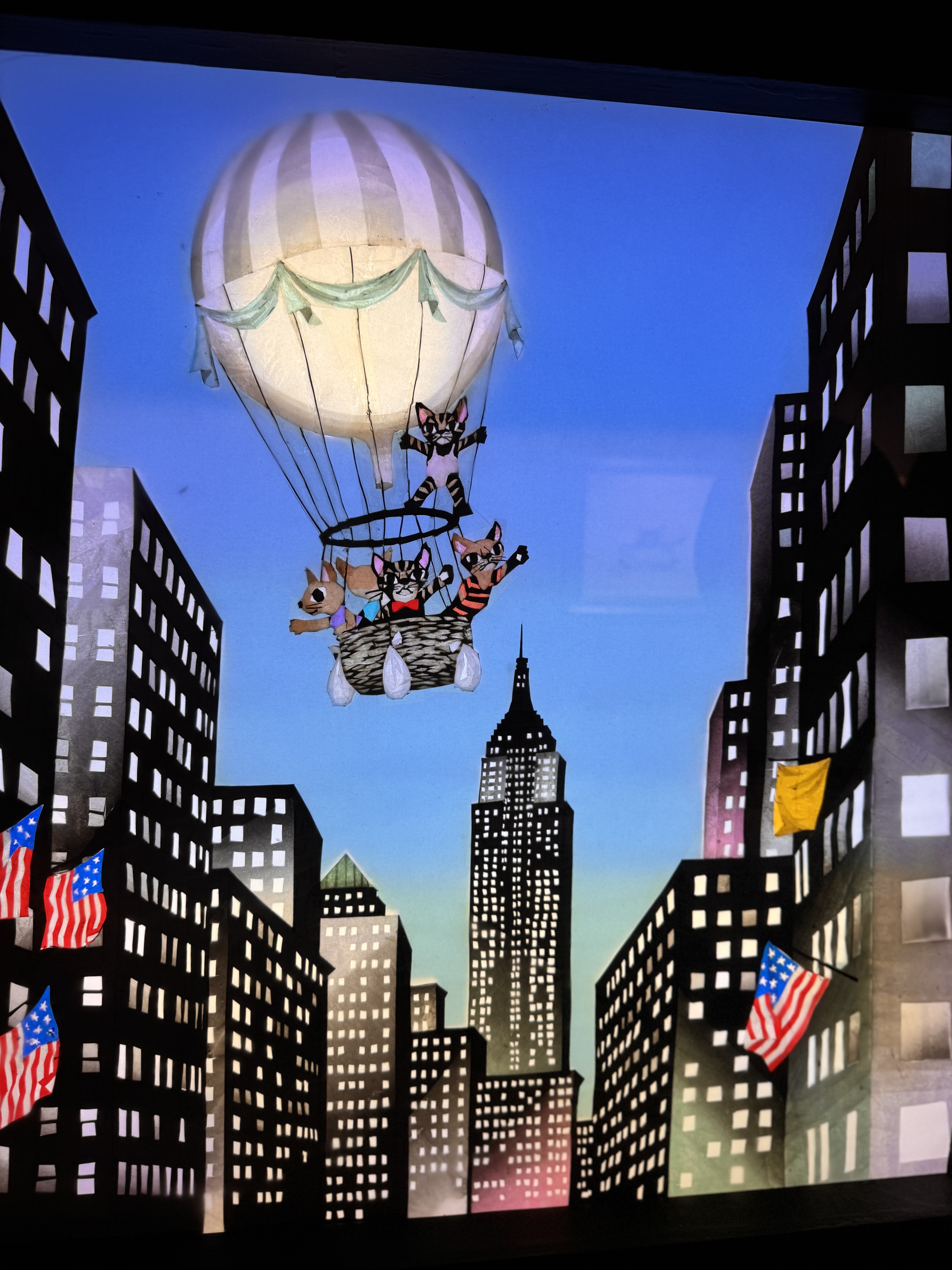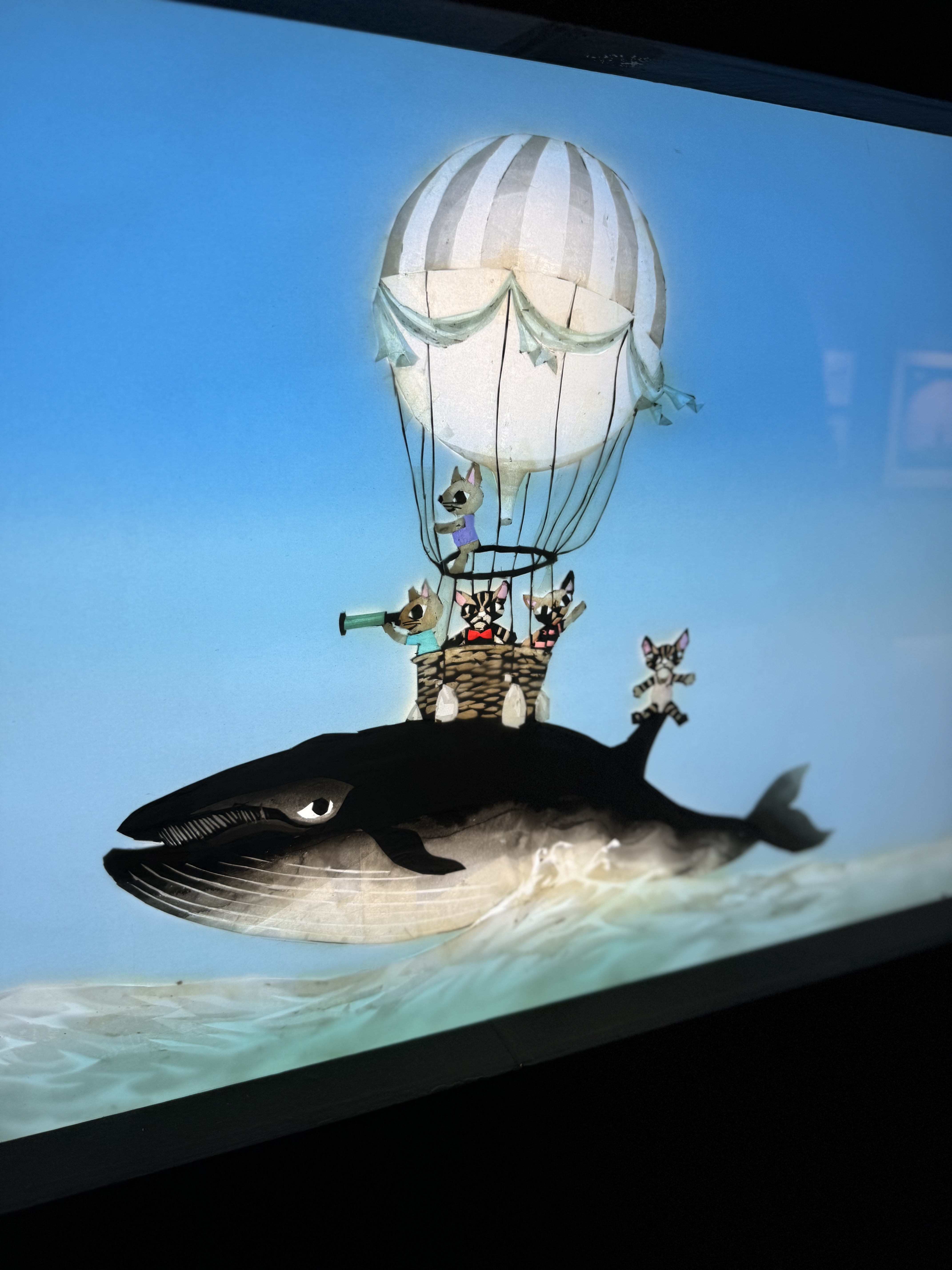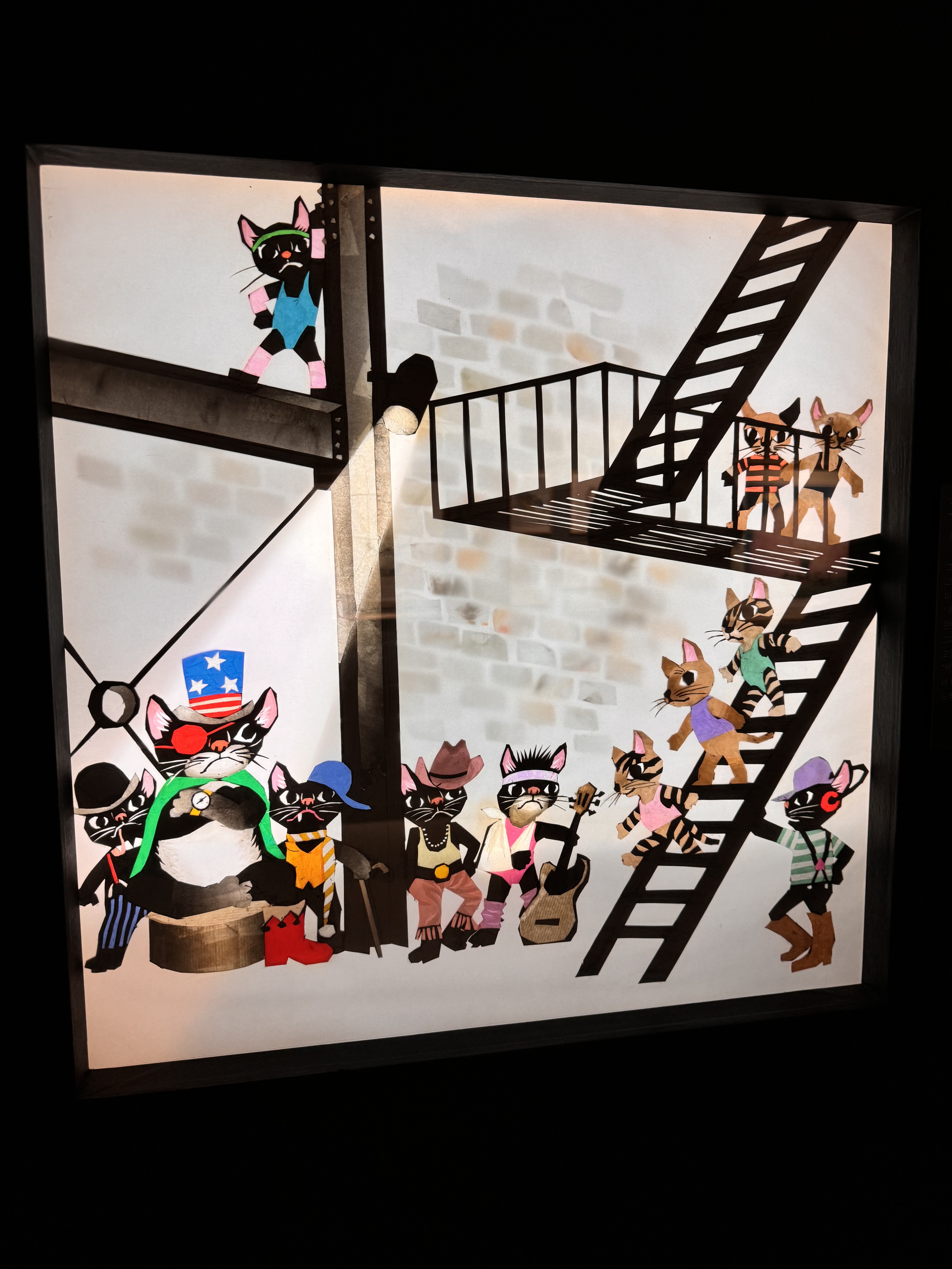 작품들은 주로 빛과 그림자를 이용한 작품들이 눈에 띄었는데 고양이, 물고기, 새 등. 작은 동물들을 주제로 한 동심 가득한 작품들이 너무 인상적이었어요. 저는 특히 이번 전시회의 제목인 '고양이 뉴욕에 가다' 시리즈가 정말 맘에 들었어요. 고양이 캐릭터들이 뉴욕의 다양한 장소에 배경으로 그려져 있어서 보는 내내 마음에 따뜻하고 좋았답니다.