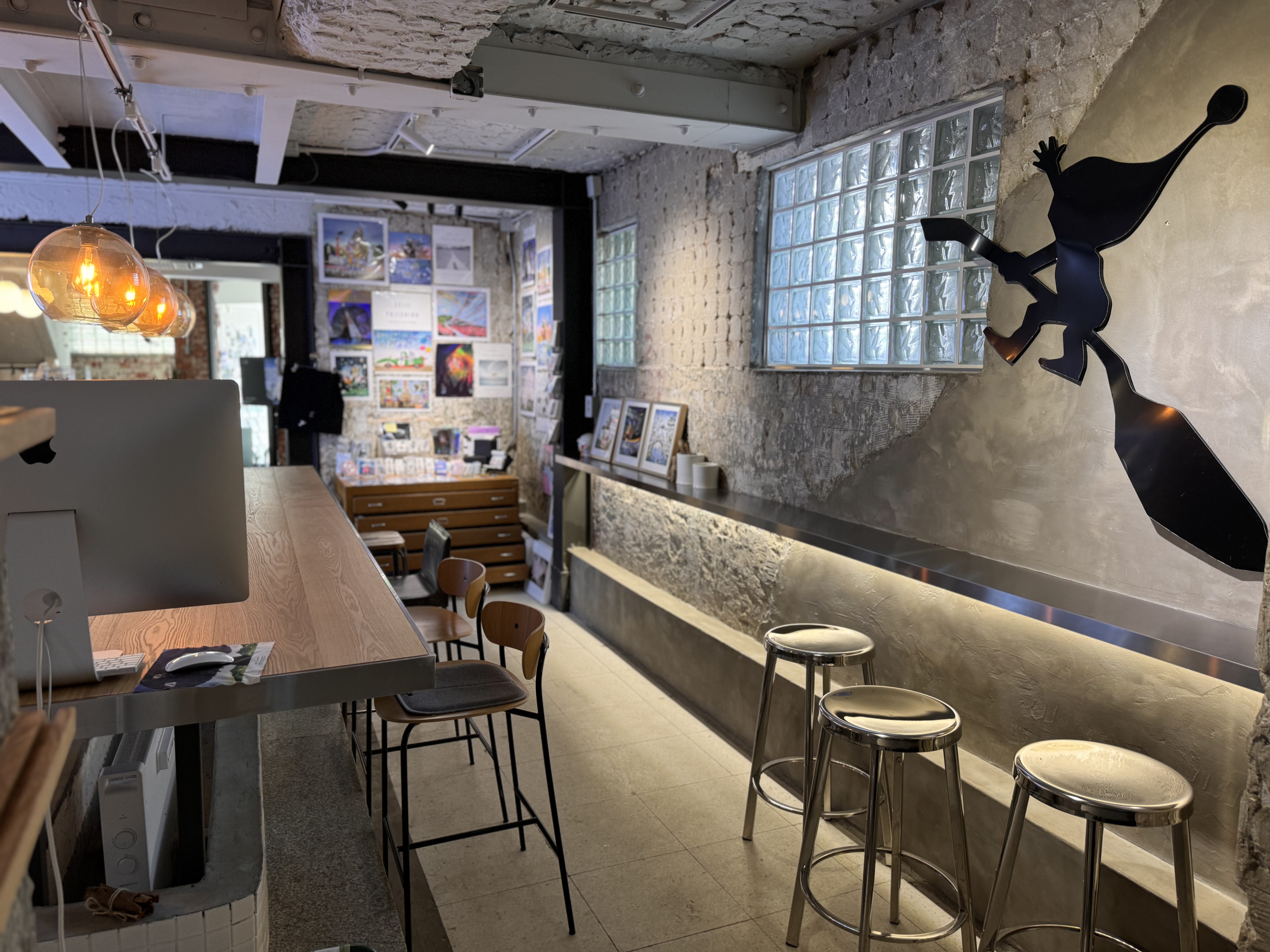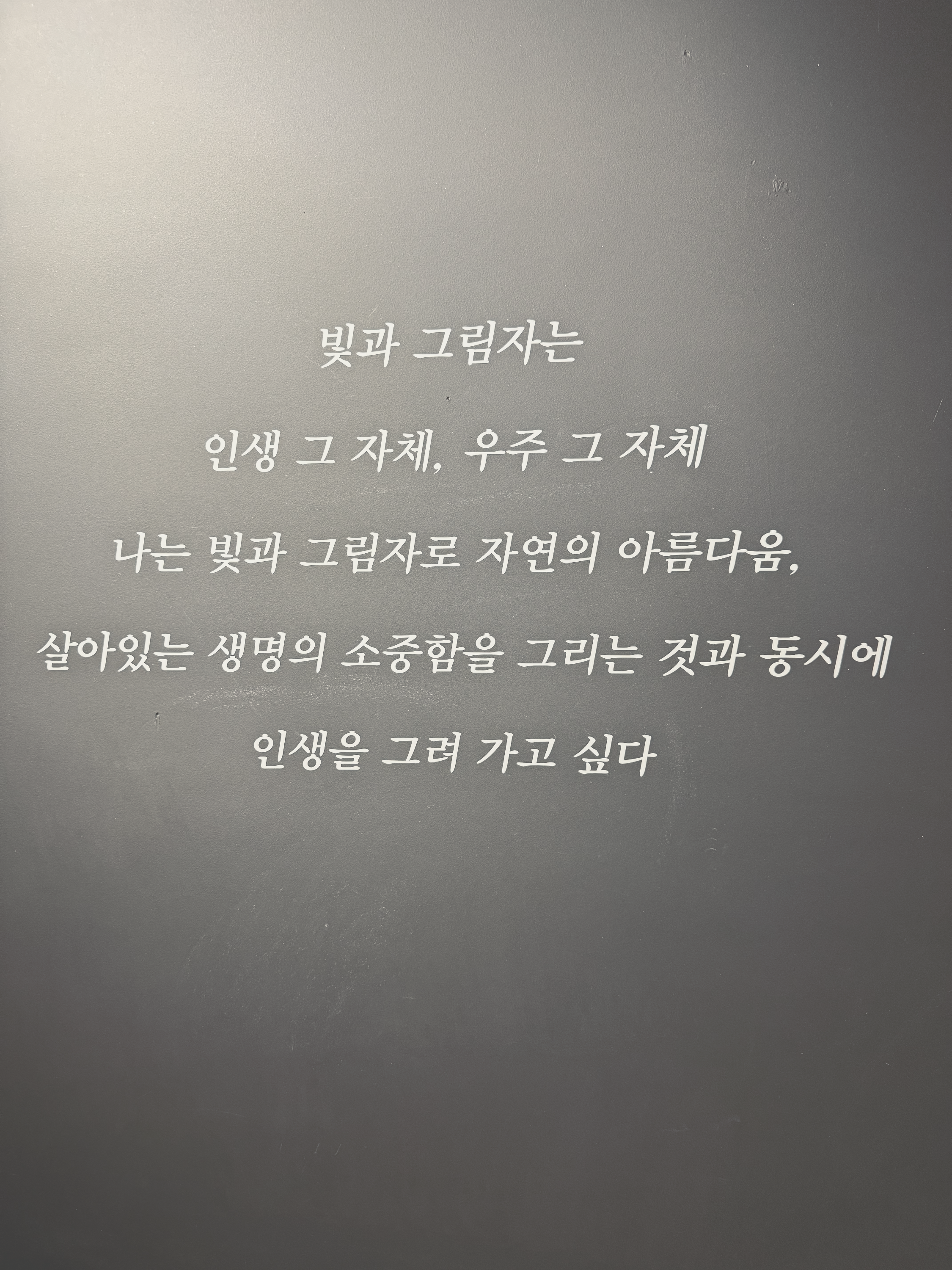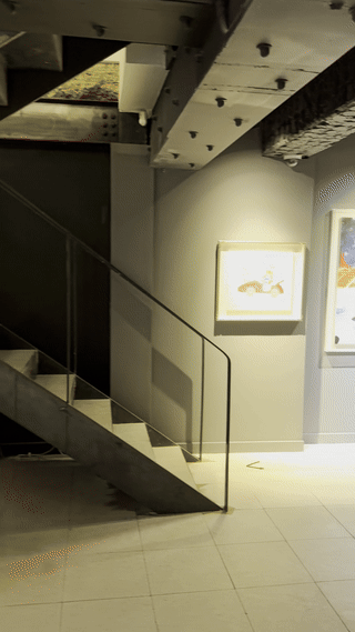 전시회장은 조용하고 한적한 분위기를 자랑하며, 작품을 감상하기에 매우 좋은 환경을 제공합니다. 전시장으로 이어지는 2층 계단에는 고양이 발바닥이 그려져 있어, 전시회장에 들어서기 전부터 동화 속에 들어온 듯한 느낌을 받을 수 있습니다. 주로 빛과 그림자를 활용한 작품들이 많으며, 고양이, 물고기, 새 등 작은 동물들을 주제로 한 동심 가득한 작품들이 전시되어 있어요.