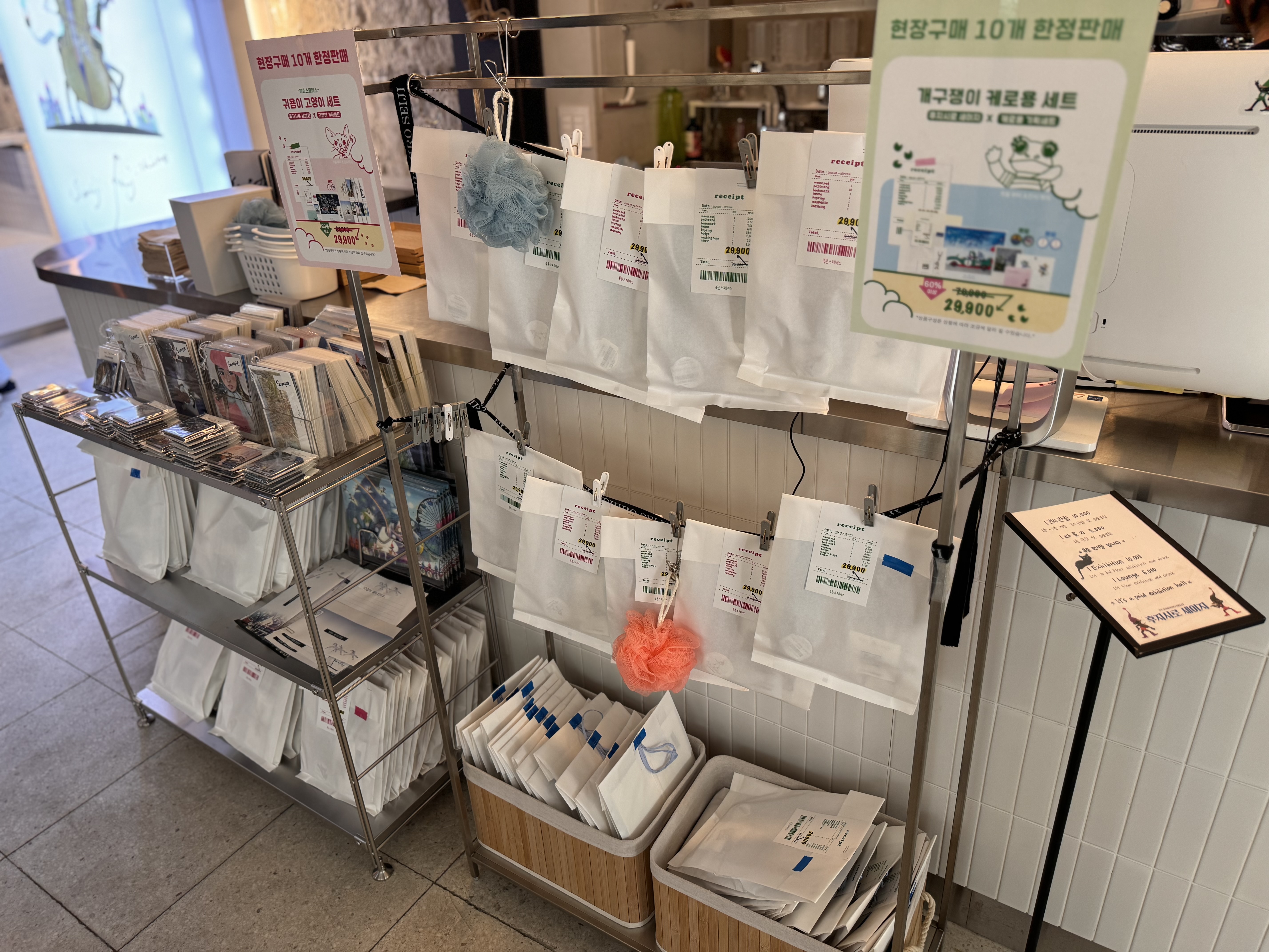 전시를 다 마치고 나면, 1층에 위치한 카페에서 커피를 즐길 수 있었어요. 티켓에 음료가 포함이라 저희는 아이스 아메리카노를 골라서 시원한 커피 한잔을 들고 느긋하게 이야기를 나누는 시간이 정말 좋았답니다. 카페도 전시장의 연장 같은 느낌이라서 예술 작품과 함께 하는 특별한 분위기를 더해주었고 커피를 마시며 전시회에서 느꼈던 감정을 나누는 시간이 전시회의 마지막을 더욱 특별하게 만들어 주었답니다.