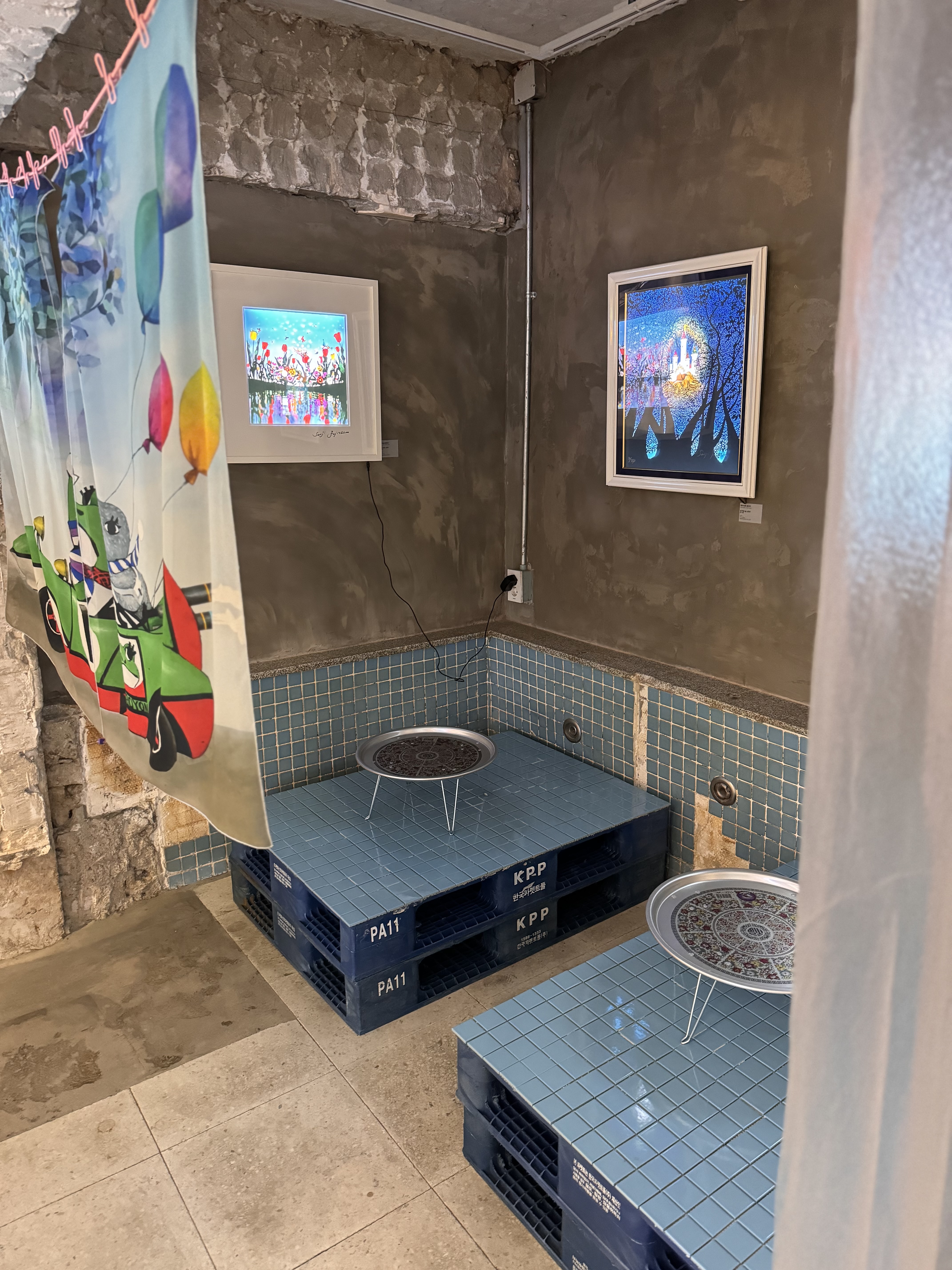 건물 자체에서 옛날의 정취와 현대의 감각이 조화를 이루고 있는 독특한 분위기가 느껴졌답니다. 전시관 입구를 지나면, 1층에는 카페와 전시 안내 데스크가 함께 운영되고 있었어요. 특히, 1층에는 목욕탕으로 되어있는 부분도 있었는데, 옛날 목욕탕의 분위기를 그대로 살린 공간이 참신하고 재미있었답니다.