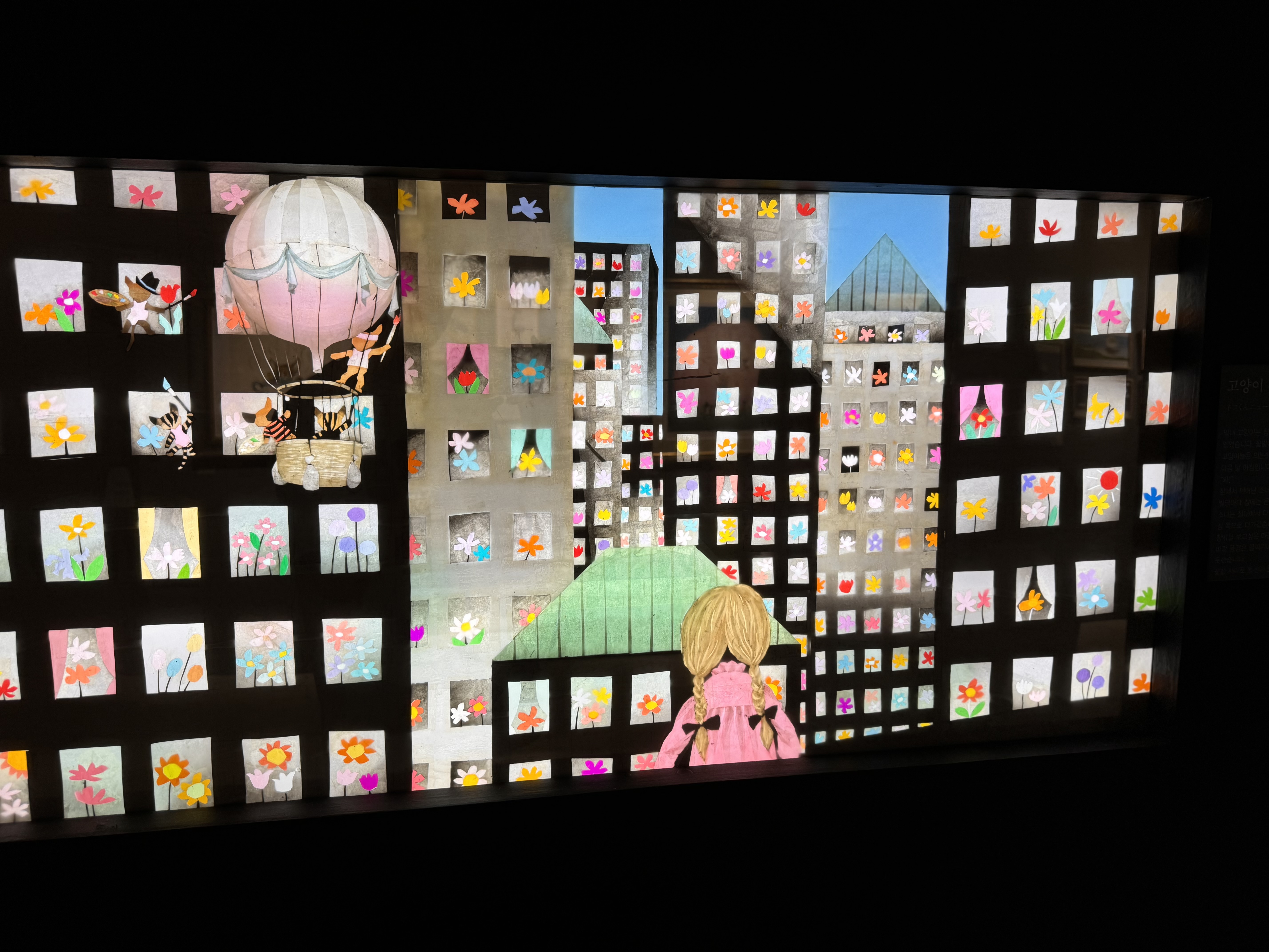 그리고 케로용, 풋칭과 차풍 이 작품들도 너무 귀여웠고 그림에서 느껴지는 따뜻한 감정들이 너무 좋았어요. 모든 작품들이 동화 속으로 빠져드는 듯한 느낌이었어요. 그리고 전시관 내에 '짱구 어른제국의 역습'에서 보았던 커다란 건물 그림을 발견했을 때는 익숙한 느낌에 신기한 느낌도 받았어요. 작지만 이런