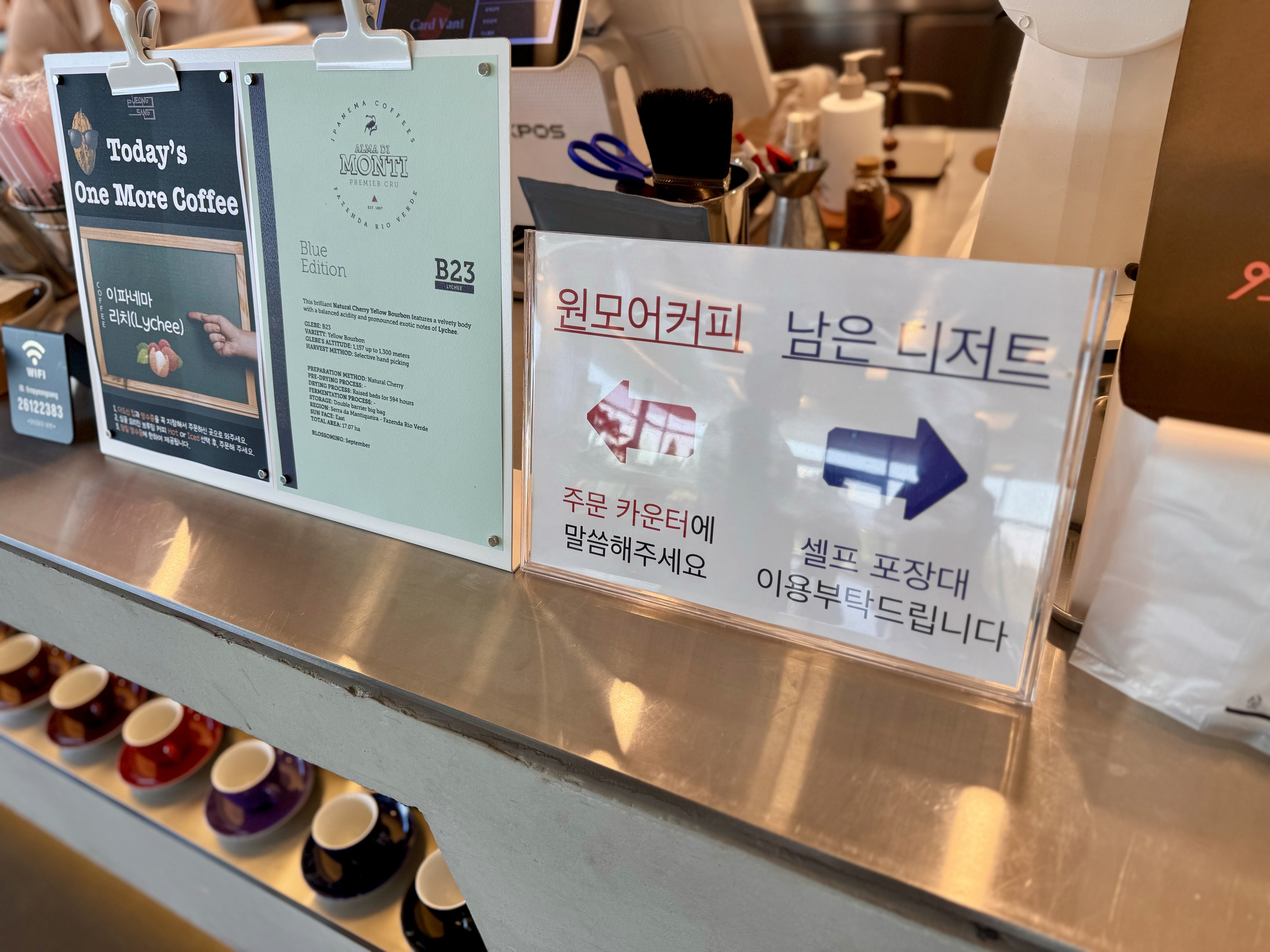 그리고 원모어 커피 시스템이라고 커피를 리필할 수 있는데 영수증만 가지고 있으면 나갈 때 새로운 커피를 테이크 아웃 해갈 수 있어서 비싼 만큼 가치 있구나 했어요!