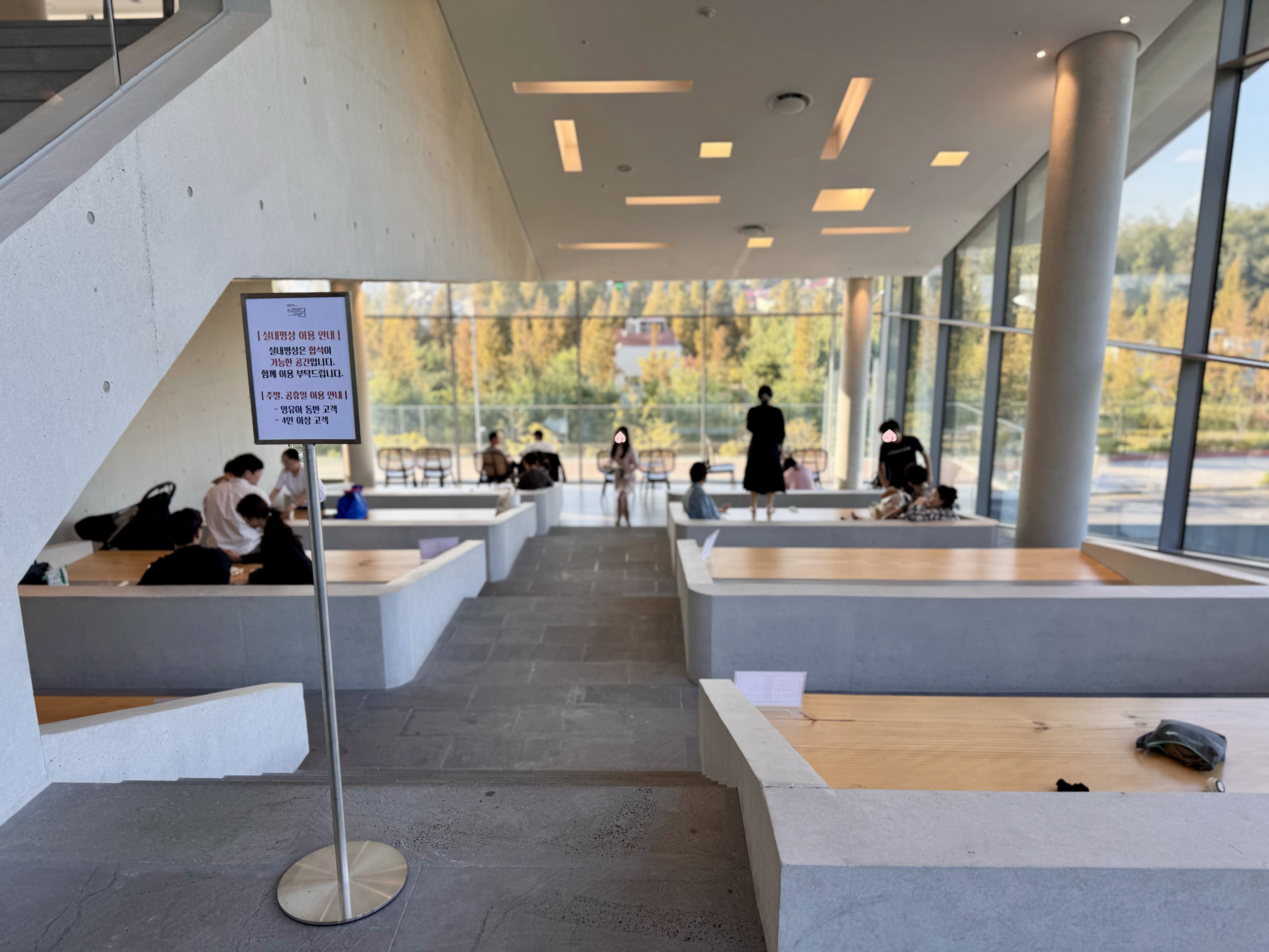 특히 5층은 노키즈존이라 조용한 시간을 보낼 수 있는 공간이라는 게 좋았어요. 이렇게 층별로 각기 다른 분위기를 즐길 수 있는 게 대형카페의 묘미인 거 같아요.