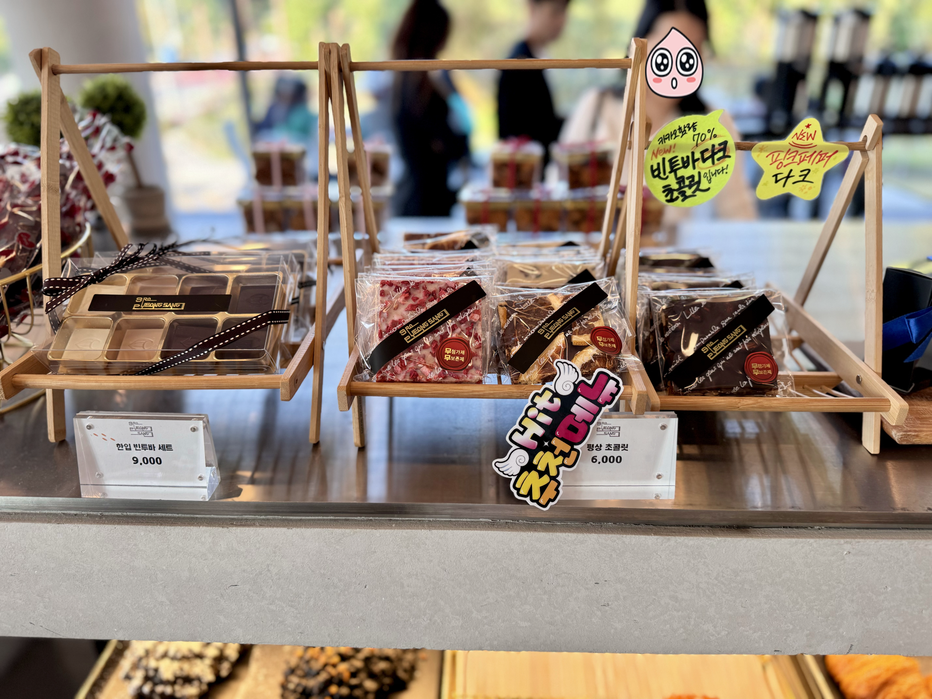 2층에는 거대한 로스팅 기계와 초콜릿, 베이커리, 커피 등 다양한 음식들을 판매하고 있었고 3층은 모꼬지나 거대한 창문으로 바라볼 수 있는 관람 평상이 있었답니다. 4층은 초콜릿 공장이랑 야외 스탠드 평상이 있었고 5층은 푸른수목원 전망대랑 산책로가 있었답니다.