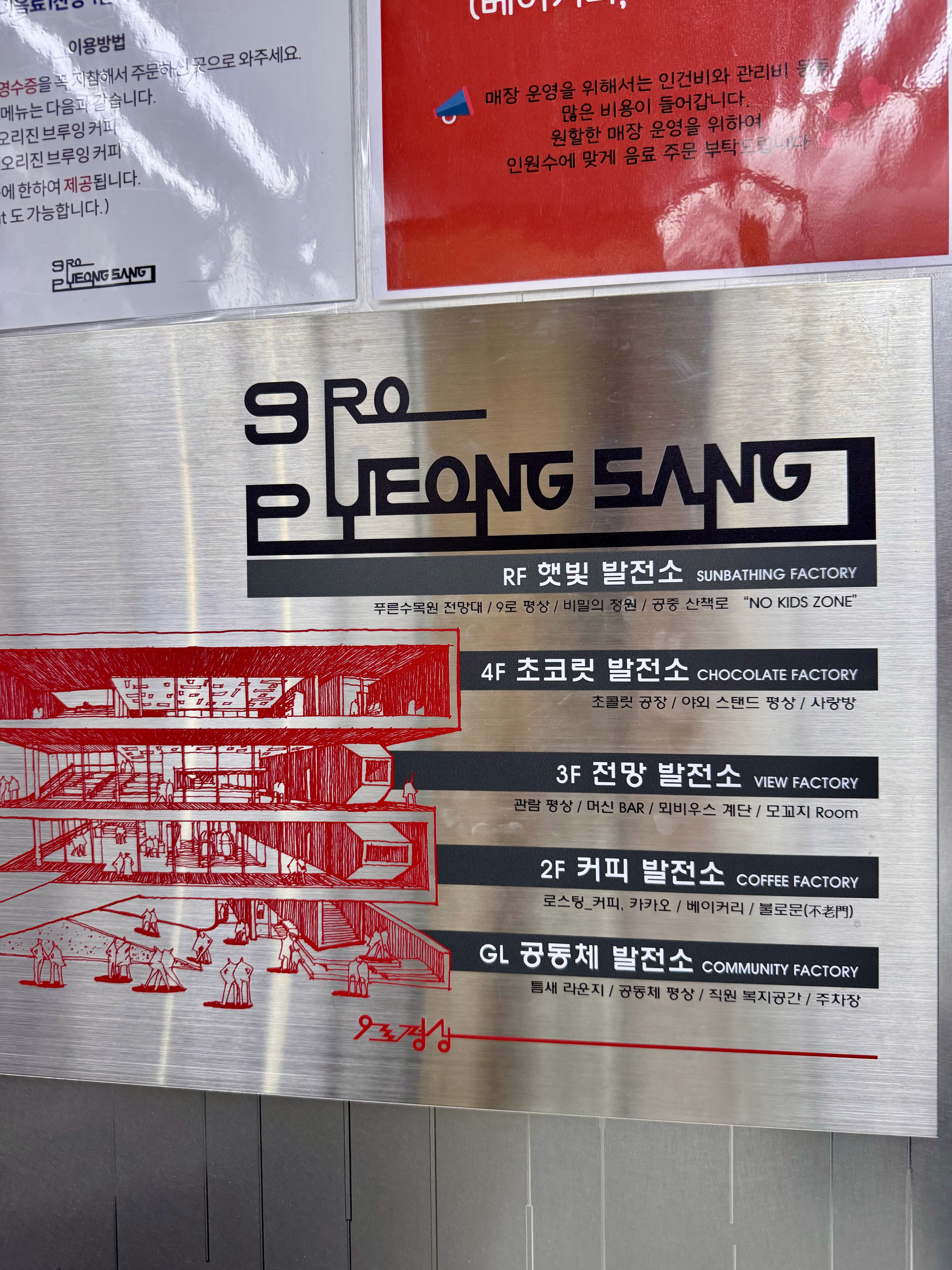 9로 평상에 도착하자마자 느낀 첫인상은 '정말 넓고 크다'였어요. 이곳은 서울특별시 건축 우수상과 시민 공감 특별상을 받은 멋진 디자인을 받을 만큼 멋진 디자인과 첫인상을 자랑하는 곳이었어요.