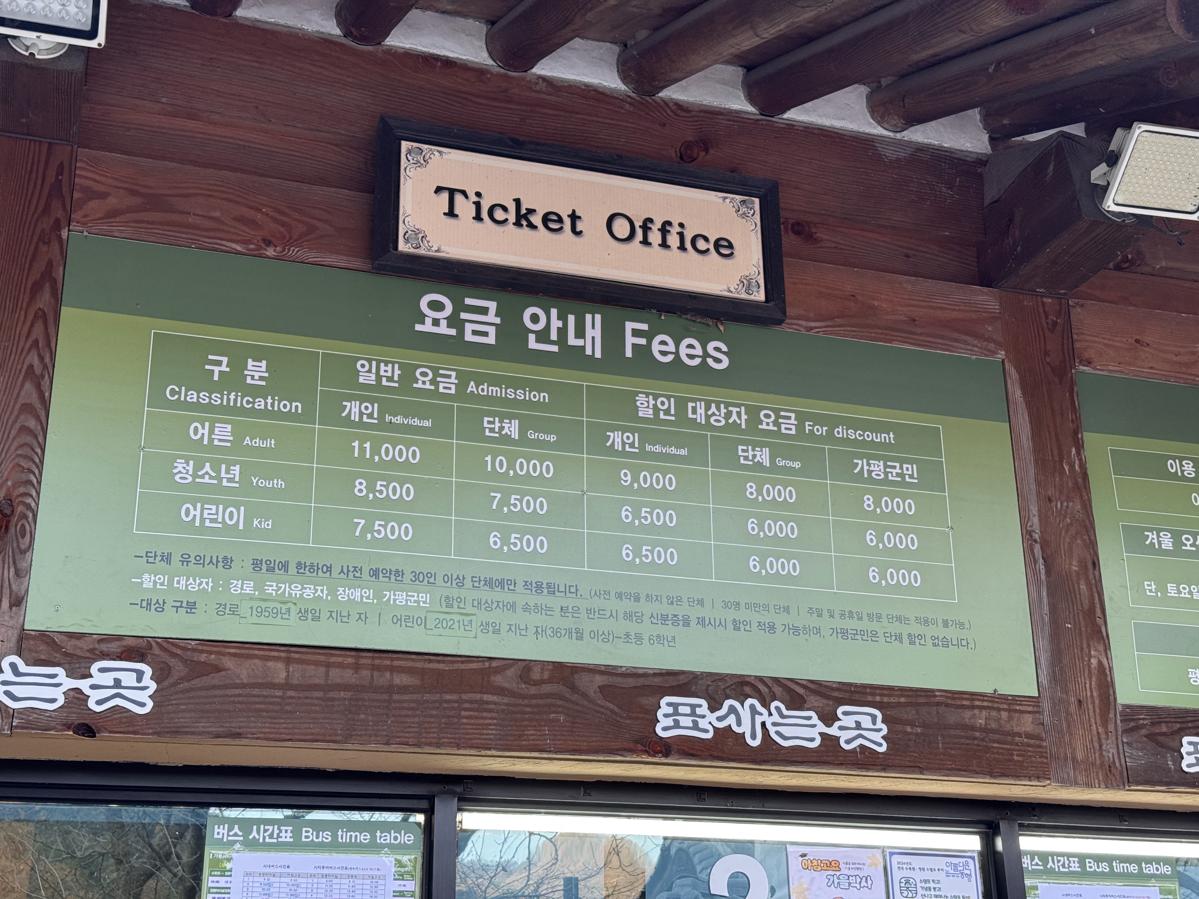 - 가평군민 할인 요금: 어른 8,000원 / 청소년 6,000원 / 어린이 6,000원