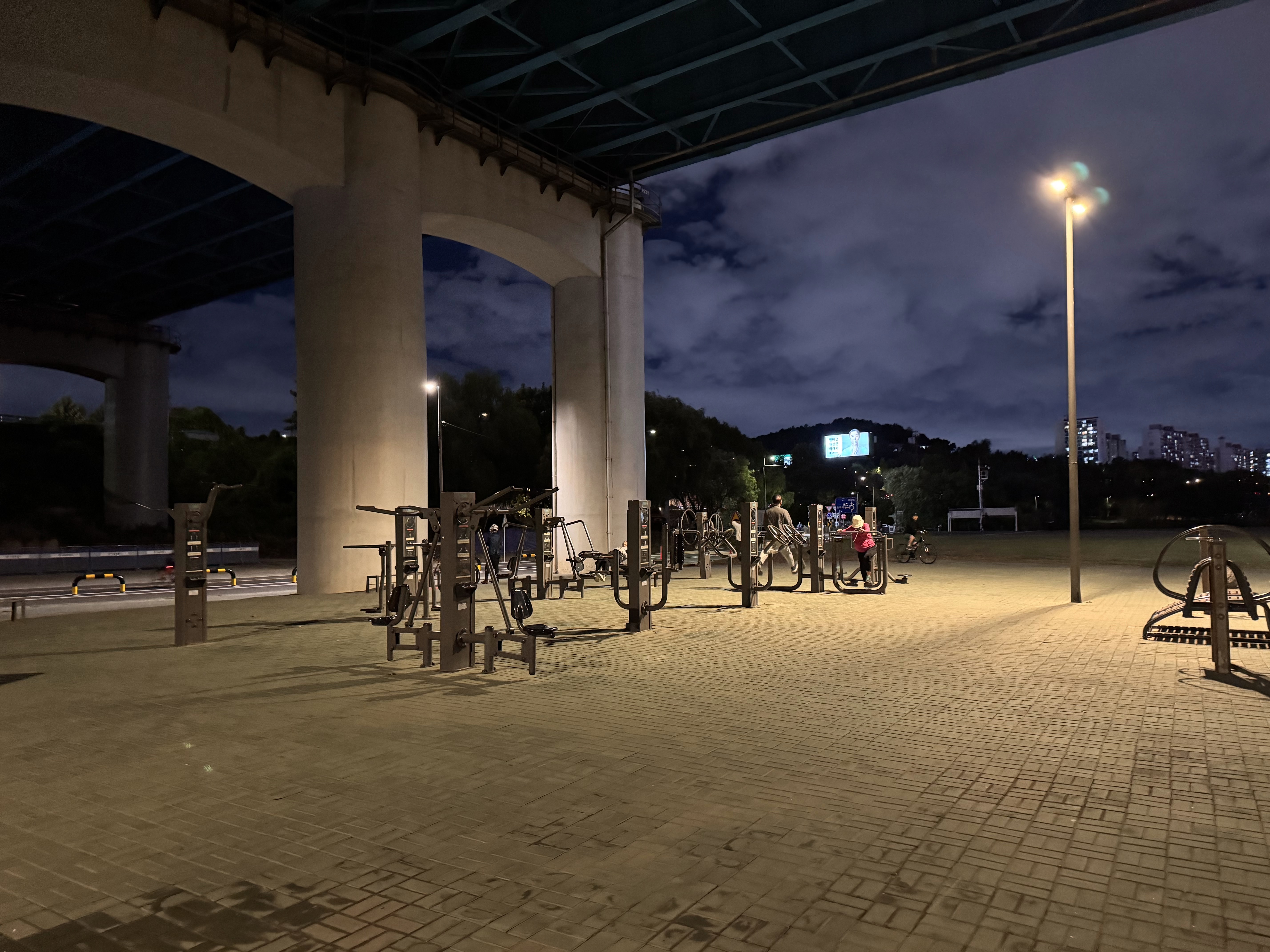 동작대교 아래에는 운동시설이 잘 마련되어 있어서 자전거 타는 사람들이나 운동하러 나온 사람들도 많이 보였어요. 상쾌한 바람을 맞으며 운동을 즐기는 모습을 보니 저도 따라서 건강해지는 느낌이었답니다.