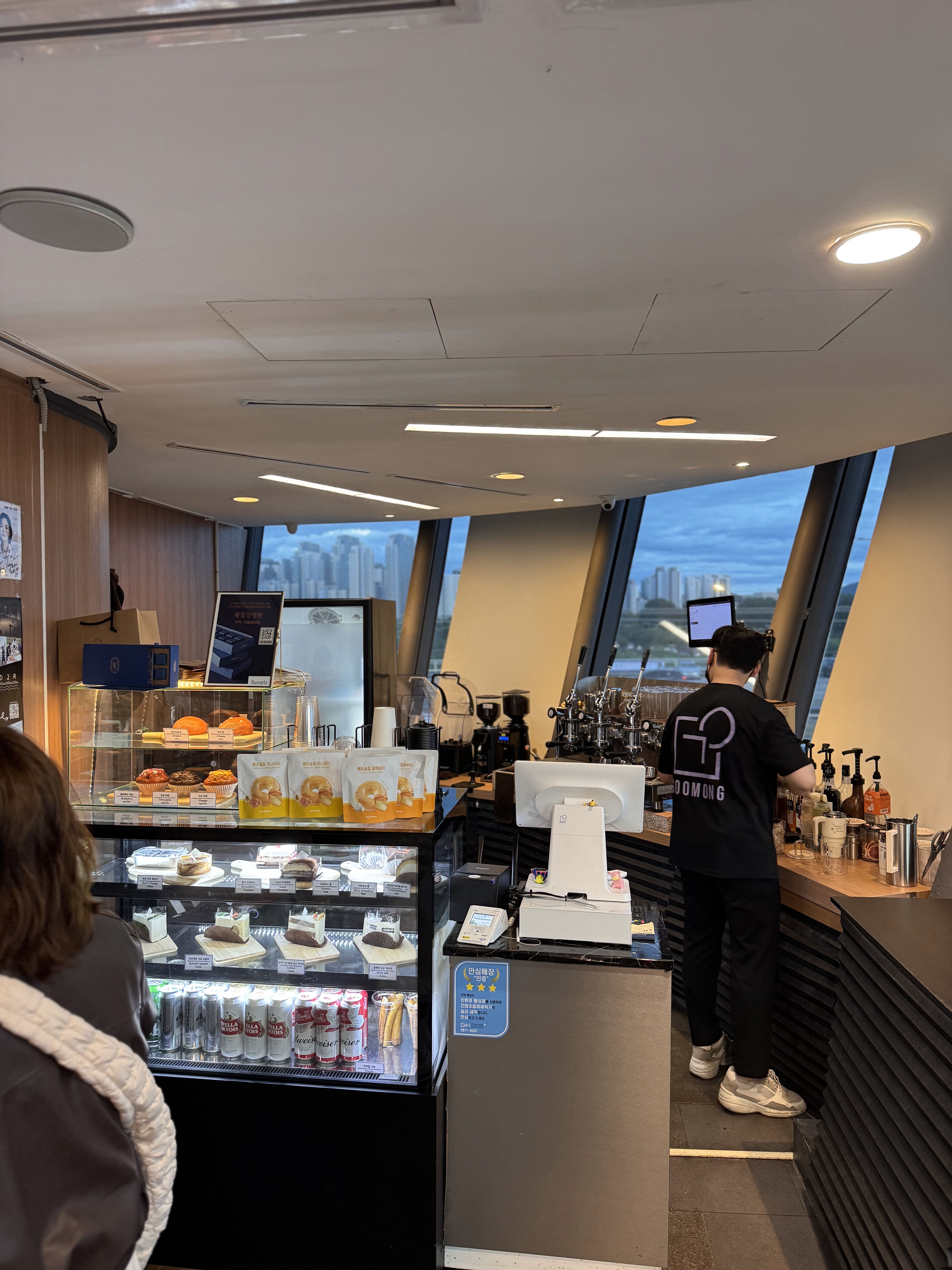 이번에 리모델링된 동작대교 노을카페는 한층 더 세련되고 깔끔해졌어요. 내부 인테리어가 한강뷰를 더 시원하게 즐길 수 있도록 새로 단장되었고, 무엇보다 창문이 넓어져서 어디에 앉아도 환상적인 풍경을 감상할 수 있어요.