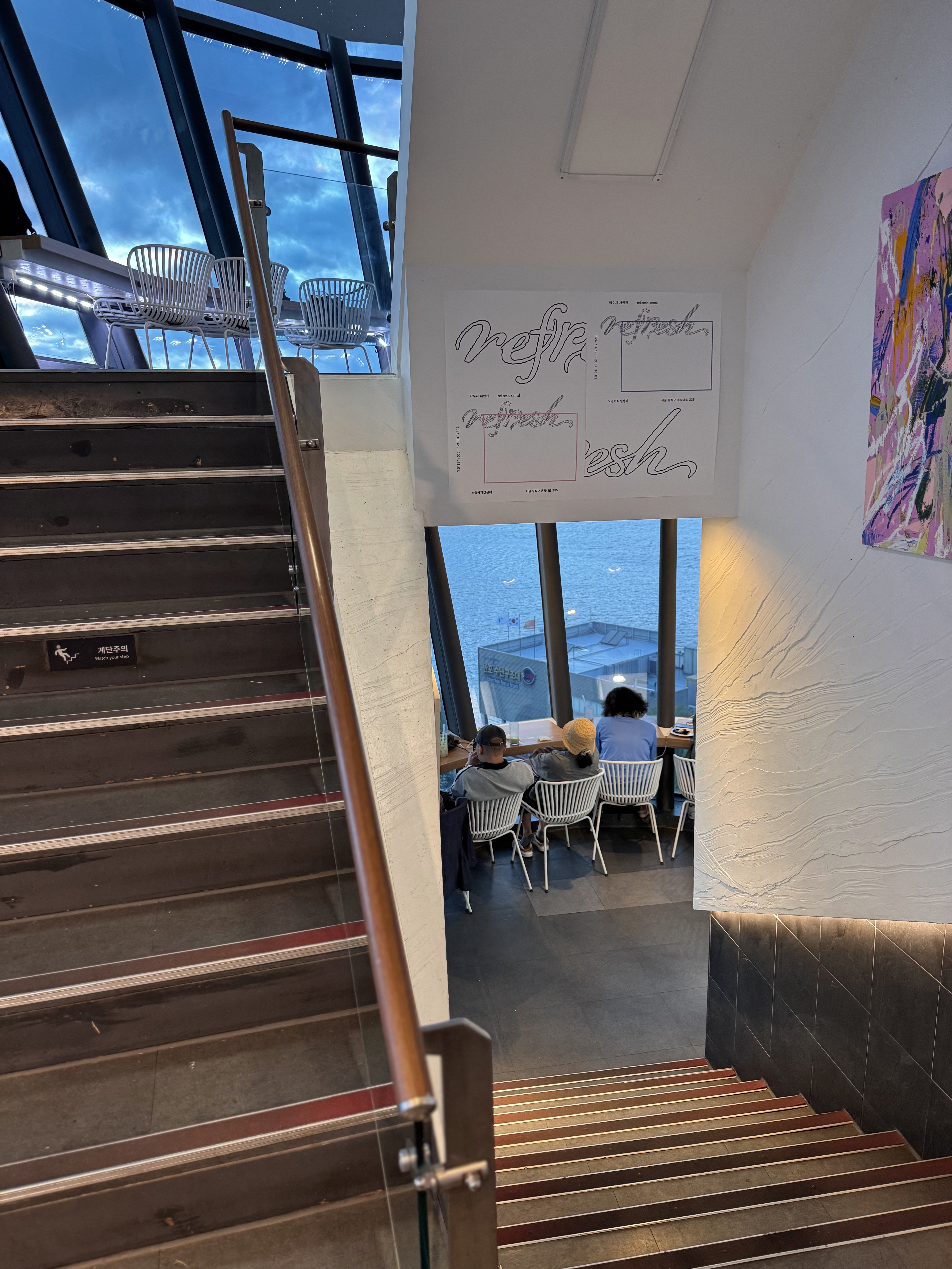 새로 생긴 바깥 테라스는 여름밤에 한강바람을 맞으며 커피를 마시기에 최고. 여유롭게 앉아 한강을 바라보고 있으면, 일상 속 스트레스가 녹아내리는 기분이었어요. 이게 바로 진정한 힐링 스폿이자 노을카페에 숨겨진 매력이구나 라는 생각이 들었어요.