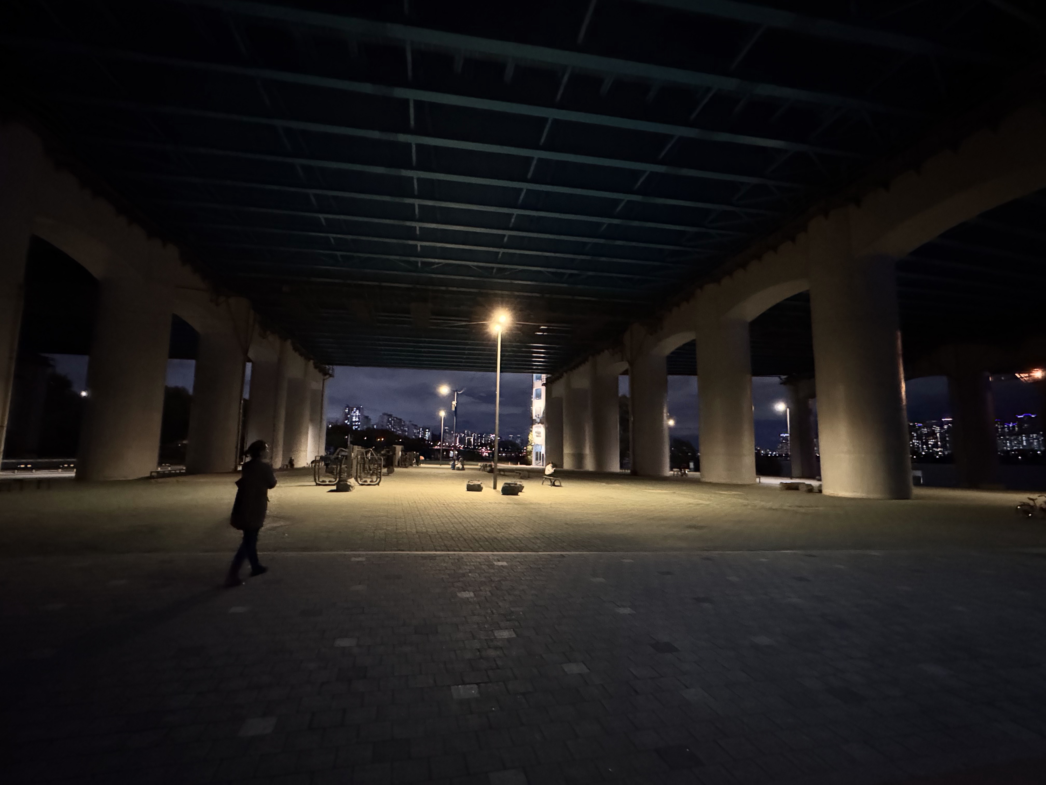 이곳의 유일한 단점은 화장실이 동작대교 아래에 위치해 있어 사용하기 불편할 수 있다는 점입니다. 화장실을 이용하려면 약간의 이동이 필요하니 이 점을 미리 고려해 주시면 좋습니다.