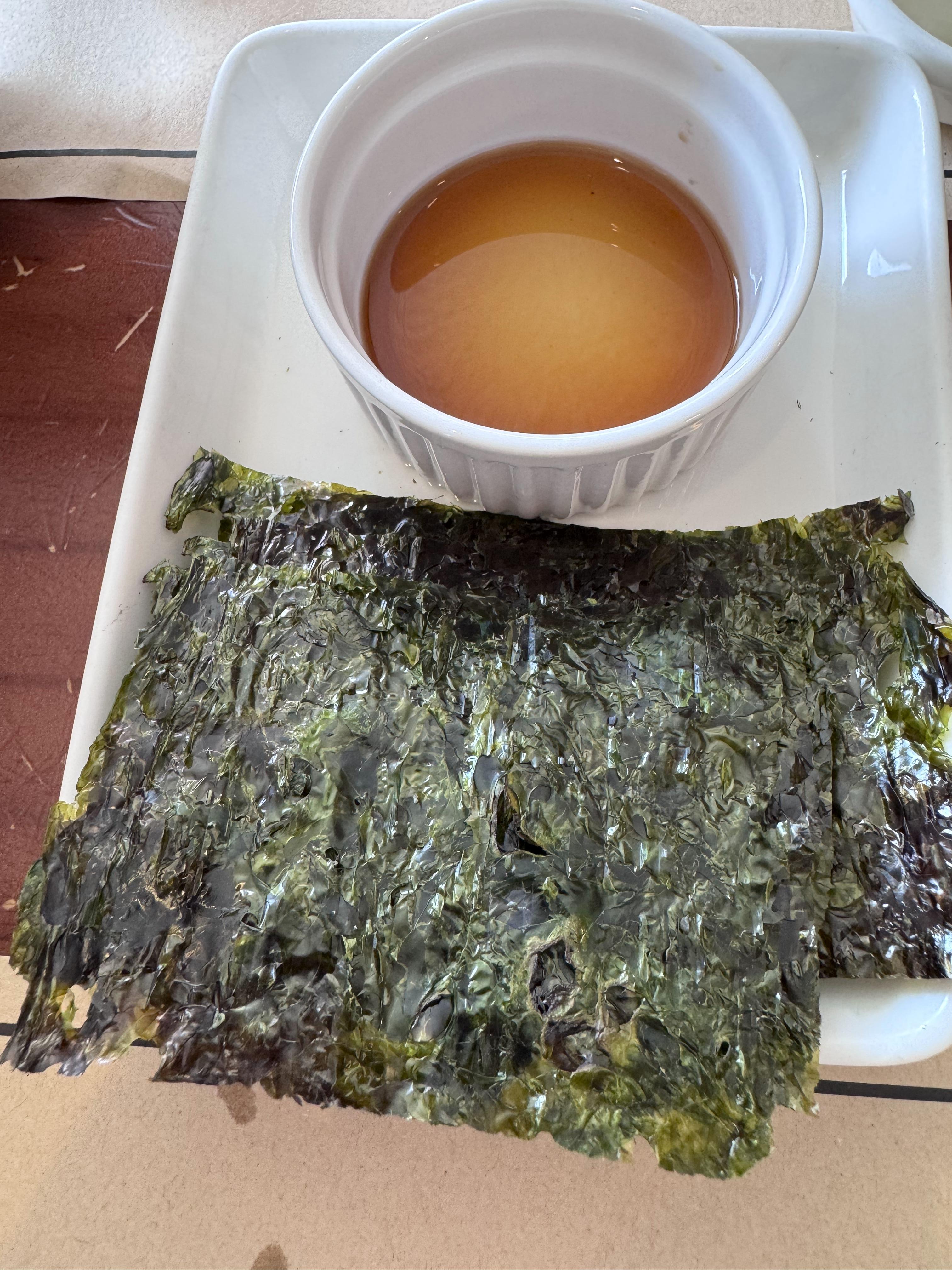 기본 반찬으로는 싸 먹는 김, 톳조림, 오징어 젓갈, 연금조림, 백김치, 미역국이 나왔는데, 반찬들 모두 정갈하고 너무 맛있었어요.